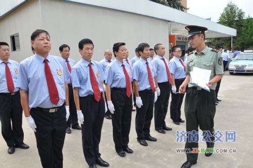 济南公交官网2012年9月8日讯 稍息、立正、向右看齐,随着一声声响亮口号,9月5日2012年济南市出租汽车行业品牌车队竞赛活动正式拉开了序幕。济南公交恒通公司雷锋车队、爱心车队两支品牌车队早在一个月前就摩拳擦掌,目标就是力争第一。练队列、整车况、读英语、背知识,每一项考点都一丝不苟,每一处不足都绝不放过。他们做的就是完美无缺,他们为的就是让“公交恒通”这个名字绽放光芒。