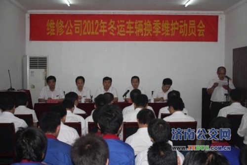 济南公交官网讯 为做好2012年车辆换季维护工作,保证冬运期间车辆技术状况良好,为营运公司提供更加优质、可靠地车辆保障,9月20日下午,维修公司召开了车辆换季维护工作动员大会。总公司副总经理石绍滕出席会议并讲话。维修公司班子成员、管理人员和修理工共70余人参加了动员会。会议由维修公司党委副书记、工会主席车立山主持。
