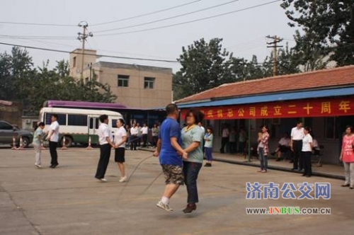 济南公交官网讯 为庆祝济南市公共交通总公司成立二十周年,丰富职工业余文化生活,9月20日下午,物资公司举办庆祝总公司成立20周年跳绳、拔河比赛,向总公司二十周年献礼。
