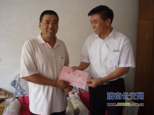 济南公交官网讯 9月27日下午,总公司副总经理石军在快速公交公司党委书记李琳等领导的陪同,下来到快速公交一队困难职工马晓堃家中走访慰问,送去了总公司党委对困难职工的关怀和节日的问候。