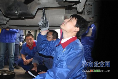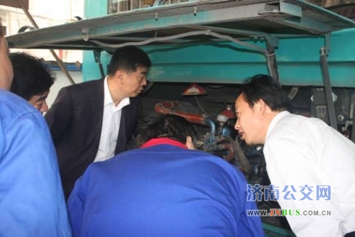 济南公交官网讯 10月9日,总公司副总经理石绍滕带领技术装备部副部长田锡庆及技术人员到维修公司所属洪家楼站点、全福立交桥、洛口等六个站点进行换季维护检查、指导。