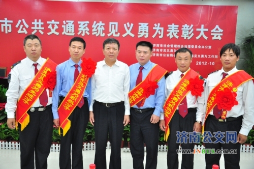 济南公交快速公交公司一队驾驶员仲岩荣获“济南市见义勇为先进分子”称号;济南公交电车公司六队驾驶员王彬、二公司六队驾驶员陈允国、济南恒通汽车服务股份有限公司李智勇、何华友被济南市公安局公共交通分局授予“见义勇为积极分子”称号。