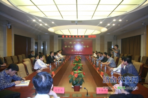 今天上午,驻马店市副市长王明威、市政府办公室副主任张建华、中国联通济南分公司相关负责人一行十余人,来济南公交参观公交信息化建设情况。济南市公交总公司总经理助理金建勇代表薛兴海总经理对王威明副市长一行的到来表示欢迎。