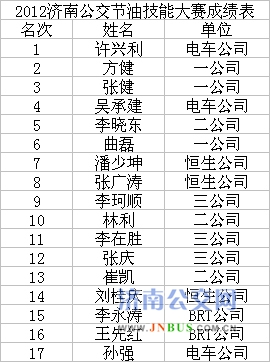 济南公交官网讯 为进一步提高驾驶员的节能驾驶技术,抓好总公司的节能减排工作,总公司于2012年10月25日在济南市交通局技工学校培训基地举行“济南公交第二届驾驶员节油技能大赛”,从各营运公司经过层层选拔而出的17名节油高手在赛道上展开了激烈角逐。