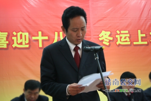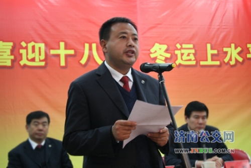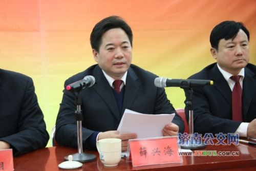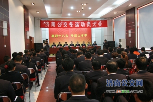 济南公交官网讯 11月6日下午,济南公交2012年冬运动员大会在总公司工会礼堂隆重召开。市交通运输局副局长、公交总公司党委书记、总经理薛兴海出席会议并做了重要讲话。他在讲话中动员公司上上下下、方方面面的力量,迅速行动起来,统一思想,提高认识,团结一心,努力为广大市民提供畅通有序的公交出行服务,圆满完成冬运各项目标任务,为党的十八大胜利召开献礼,为我市“公交都市”试点建设贡献更加积极地力量。大会由总公司党委副书记、工会主席刘波同志主持。