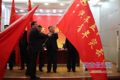 一公司经理杨奎星为车队授旗