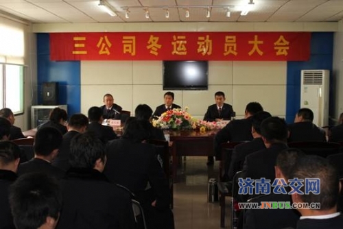 济南公交官网讯 11月9日,三公司在刘智远召开冬运动员大会,传达总公司冬运动员大会精神和薛总讲话指示,部署2012年冬运工作任务。总公司副总经理姜良出席会议。三公司领导班子成员及管理人员、驾驶员代表60余人参加会议。会议由三公司副经理李元毅主持。
