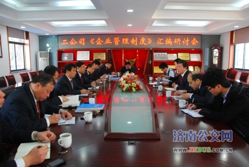 济南公交官网讯 为使总公司企业管理体系内容更加充实和完善,15日上午,总公司总经理助理金建勇、法律事务部部长李红卫、制度建设办公室主任王伟征及相关工作人员一行5人到二公司,对各项管理制度在落实中存在的问题和《济南市公共交通总公司企业管理制度》丛书的增补工作进行了调研。二公司班子成员、部门负责人及车队长代表参加了会议。