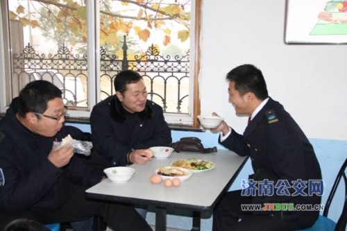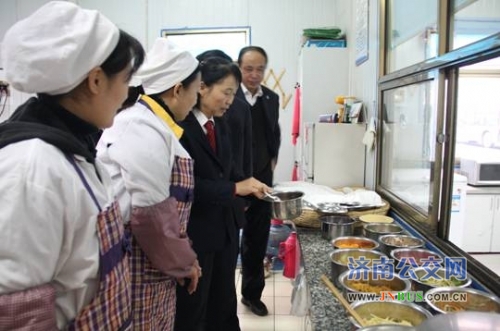 济南公交官网讯 为深入扎实开展好“喜迎十八大,冬运上水平”活动,做好冬运期间职工后勤保障工作,11月16日早上,一公司党委副书记、工会主席李秀珍带领各车队分管副书记对公司所属站点小食堂早餐供应情况及站房保暖情况进行了检查。