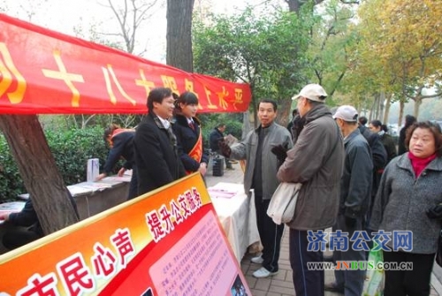 济南公交官网讯 为学习贯彻党的十八大精神,提高公司服务水平,16日上午,二公司在英雄山站点设立“便民咨询台”,开展了“便民服务上站台、有奖征集金点子”活动。