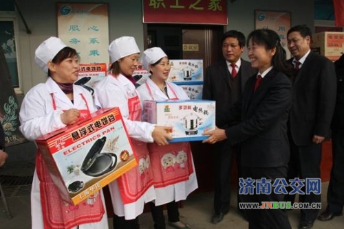 济南公交官网讯 为贯彻落实总公司2012年冬运工作部署,积极开展“面对面,心贴心,实打实,服务在基层”活动,不断加强车队职工食堂建设,进一步做好后勤保障工作,确保职工吃饱吃好吃健康。近日,一公司特采购一批电饭锅、电炒锅、电饼铛等食堂所需物品,并送到各车队小食堂,受到了车队的热烈欢迎,体现了公司以人为本的管理理念,为圆满完成冬运工作任务提供了有力的后勤保障。