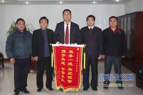 济南公交官网讯 12月3日下午,三公司一队副队长王凌军、机务员王开瑞代表车队为维修公司送来了锦旗,感谢洪家楼站点维修人员为车队提供的优质服务和可靠的车辆保障。