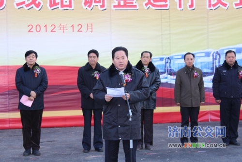 市交通运输局副局长、公交总公司党委书记、总经理薛兴海同志在仪式上致辞。他表示,近年来,总公司在市委、市政府和市交通运输局的正确领导下,在社会各界的支持和帮助下,不断加强公交服务保障能力建设,积极拓展公交服务领域,精心组织线路调整和线网优化,切实提高车辆装备水平,着力提升公交服务品质,努力为市民提供更加优质的公交出行服务,公交事业呈现出快速发展的新局面。特别是去年以来,针对高新开发区经济社会快速发展的实际,济南公交与高新区管委会通力合作,走出了我市公交发展的新模式。K162、K163和K166路线的开通得到了高新区管委会各级领导的大力支持。济南公交将以国家“公交都市”示范工程建设为目标,进一步加强与管委会的交流合作,努力为高新开发区的发展和广大市民出行提供更加优质、便捷的公交服务。