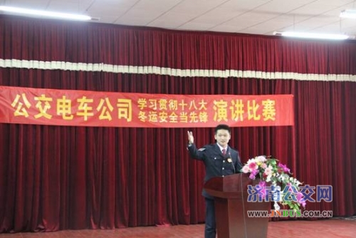 济南公交官网讯 12月19日上午,公司团委举办了以“学习贯彻十八大,冬运安全当先锋”为主题的演讲比赛。