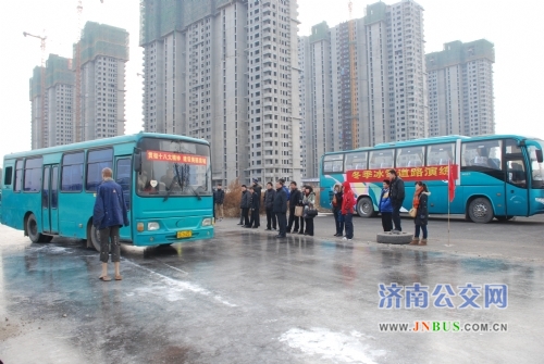 济南公交官网讯 近日泉城气温逐渐下降,降雪天气说来就来。19日上午,二公司在东宇花园停车场组织近100余名未参过冬季运行的驾驶员进行了一次冰面驾驶实战演练,提前做好雨雪天气运行准备工作。