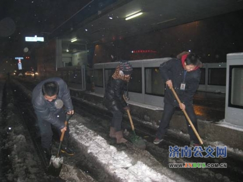 12月21日清晨,一夜的鹅毛大雪使泉城济南变成了银装素裹的世界,BRT站台及专用道内厚厚的积雪给快速公交车辆的营运、安全带来了巨大的挑战。