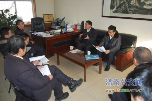 济南公交官网讯 12月25日下午,总公司副总经理李双喜、企业发展部部长蒋有德来到三公司,了解2012年经营指标完成情况, 进行2013年经济运行调研。三公司班子成员及机关各部室负责人参加了会议。