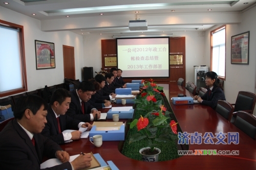 济南公交官网讯 12月26日上午,一公司在石门会议室召开2012年政工台帐检查总结暨2013年工作部署会。公司副书记、工会主席李秀珍及各车队党支部副书记参加会议。会议由公司副书记、工会主席李秀珍主持。