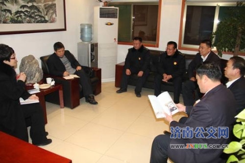 济南公交官网讯 12月28日,《经济日报》济南站站长管斌和《经济日报》北京站记者在总公司企业文化部部长赵东云的陪同下,到一公司对节能减排进行专访。一公司党委书记、经理杨奎星,副经理何彬以及“全国节油明星”张健和“节能减排标兵”方健参加了访谈。