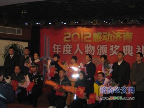 济南公交官网讯 1月4日上午,济南市宣传部、市文明办、生活日报在新闻大厦联合举办“2012年感动济南年度人物大型推选活动”颁奖典礼。济南公交三公司119路退休驾驶员于爱静同志获得“2012感动济南年度人物”提名奖。