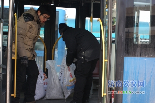 济南公交官网讯 近期雨雪恶劣天气频繁,站台防滑沙消耗严重,为随时做好应对雨雪恶劣天气的物资准备工作,快速公交站务管理部的党员、高星级站务员及冬运突击队员积极行动起来,开展奉献日活动,为站台配送防滑沙150余袋。此次活动得到了快速公交二队的大力支持,车队得知此事后积极安排车辆及时协助将防滑沙配送至站台,有效地保障了冬运期间站台防滑物资的配备到位。