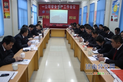 济南公交官网讯 为认真贯彻落实总公司1月20日安全生产工作会议要求和薛总的指示精神,进一步做好公司2013年各项安全生产工作,20日下午,一公司在汽车五队召开安全生产工作会议,公司安委会成员、副科级以上管理人员及车队安全员30余人参加了会议,会议由公司党委副书记、工会主席李秀珍主持。