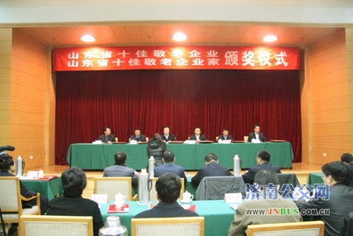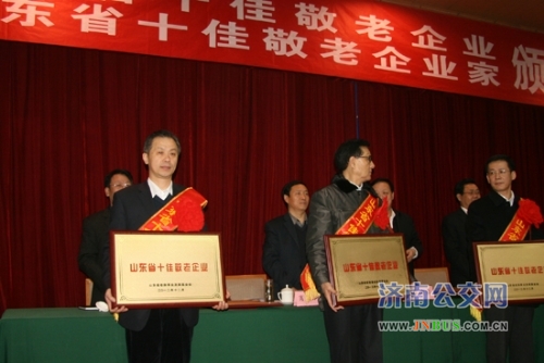 济南公交官网讯 1月17日上午,山东十佳敬老企业、十佳敬老企业家颁奖仪式在南郊宾馆隆重举行。济南市公共交通总公司被评为“山东十佳敬老企业”,总公司政工部部长王永济代表济南公交上台领奖。