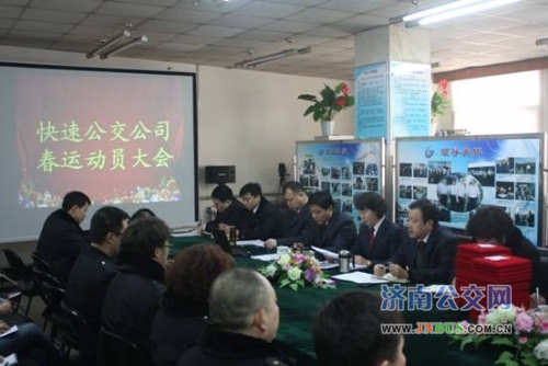 济南公交官网讯 1月25日上午,快速公交公司在公司机关会议室召开2013年春运动员大会,公司领导班子成员、各车队、部门负责人及职工代表40余人参加了会议。会议由快速公交公司党委书记李琳主持。