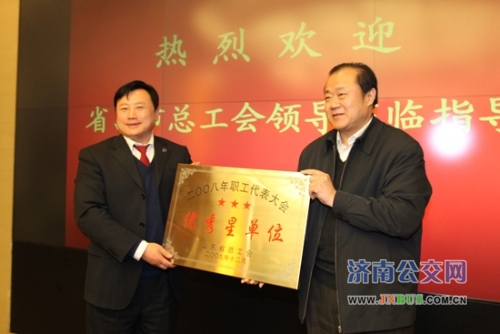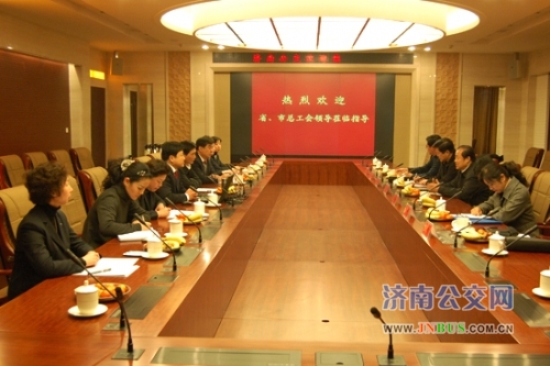 济南公交官网讯 12月29日上午,山东省总工会民管部部部侯国华同志在济南市总工会副主席董福茂、民管部部长韩跃、市政公用事业局党委副书记雷卫国等领导同的陪同下,对济南公交荣获“二OO八年度职工代表大会优秀星单位”进行了检查验收,莅临指导工作。公交总公司党委副书记、工会主席刘波,副总经理石绍滕,工会副主席尹萍参加会议。