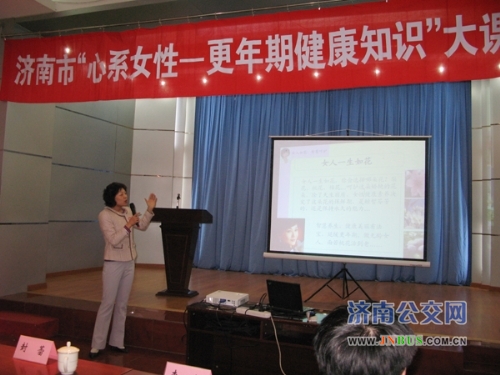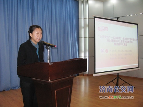 济南公交官网讯 2010年11月17日下午,全总女职工部权益一处在总公司礼堂举办“心系女性”—2010年度“北京同仁堂坤宝丸杯”妇女健康知识大赛系列宣教活动,全国总工会女职工部权益一处处长封蕾、全国心系系列活动组委会办公室副主任张帆、山东省总工会女工部张艳丽等领导同志参加了此次宣教活动,活动由济南市总工会副主席于虹同志主持。