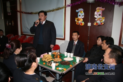 济南公交官网1月28日讯 昨天下午,市公交总公司礼堂内欢歌笑语,其乐融融,处处洋溢着温馨祥和的气氛,济南公交劳模、先进迎春茶话会在这里举行。市交通运输局副局长、市公交总公司党委书记、总经理薛兴海携班子成员出席会议。茶话会由总公司党委副书记、工会主席刘波主持。