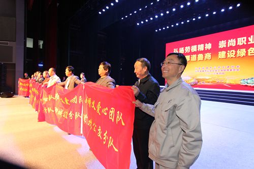 4月12日上午,以“弘扬劳模精神、崇尚职业道德、倡树厚道鲁商、建设绿色公交”为主题的——许振超、郭明义同志先进事迹报告会在济南市群众艺术馆举行,市委常委、市总工会主席王以才,山东省交通工会主席姜树奎,山东省总工会宣教部部长李东风,济南市交通运输局副局长罗卫东,山东省17市公交企业党委书记、总经理、工会主席和部分劳动模范代表共计550余人参加报告会。