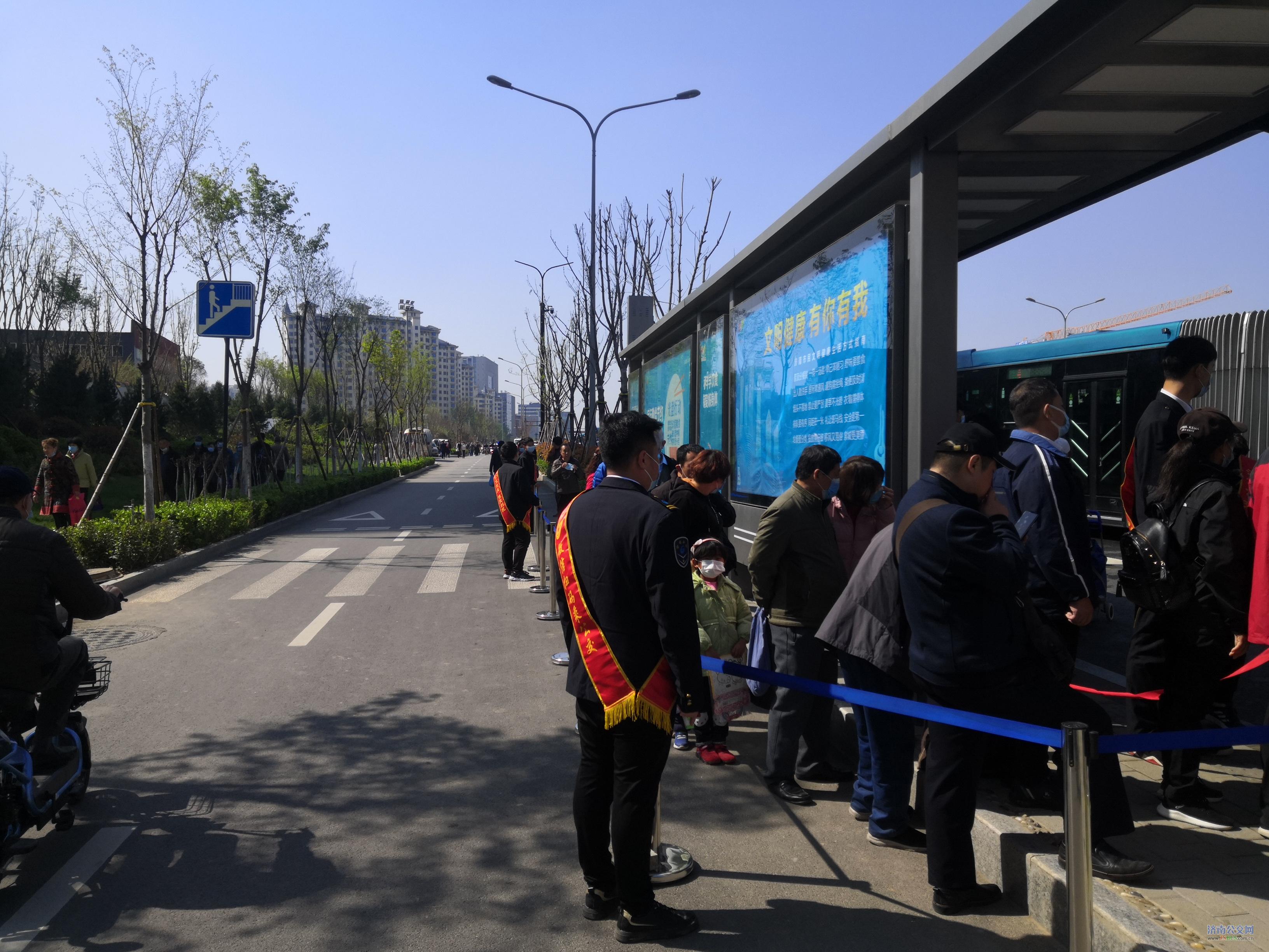 为了祭扫市民到达公墓下车方便,车队与交警部门协调在距离玉函山公墓进出口最近的位置设置了临时站点。由于祭扫市民乘车比较集中,为了确保提供一个良好的站点乘车秩序,车队工作人员佩戴手袋,设置引导绳,手持引导牌,组织倡导广大祭扫市民排队乘车,提倡“文明祭扫、绿色出行”,保证了市民的乘车安全,又提高了车辆运行效率。同时,展现济南文明城市的精神风貌,形成了一道美丽的风景线。