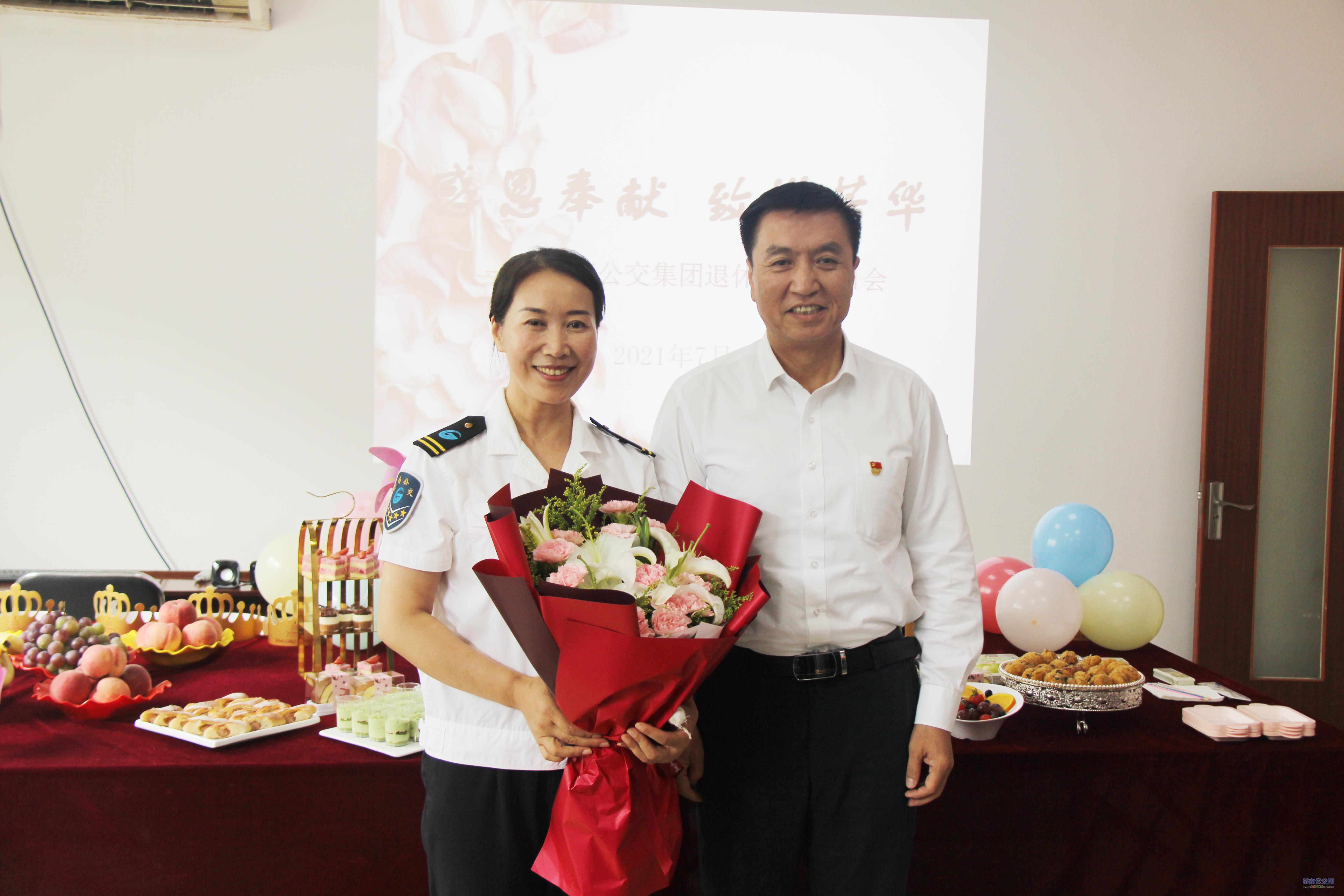 7月21日下午,干线公司在五院场站活动室举办集团退休职工生日会,集团党委书记、董事长石军专程来到活动现场,为退休职工们颁发了退休纪念章,送上了公交车模型,感谢他们用自己的青春和汗水为广大乘客提供的优质服务、为企业做出的无私奉献。石董事长特别提到全国五一劳动奖章获得者徐维玉,在公交度过了31个春夏秋冬,在岗10950天,安全行驶98万公里,相当于绕地球20多圈,微笑服务164万余次。石董事长说:“我是徐维玉的粉丝,我是劳模的粉丝。徐维玉每天的工作如同教科书,我们每一名员工,包括我在内,都要向徐维玉学习,传承劳模精神,打造有温度的10米车厢。”