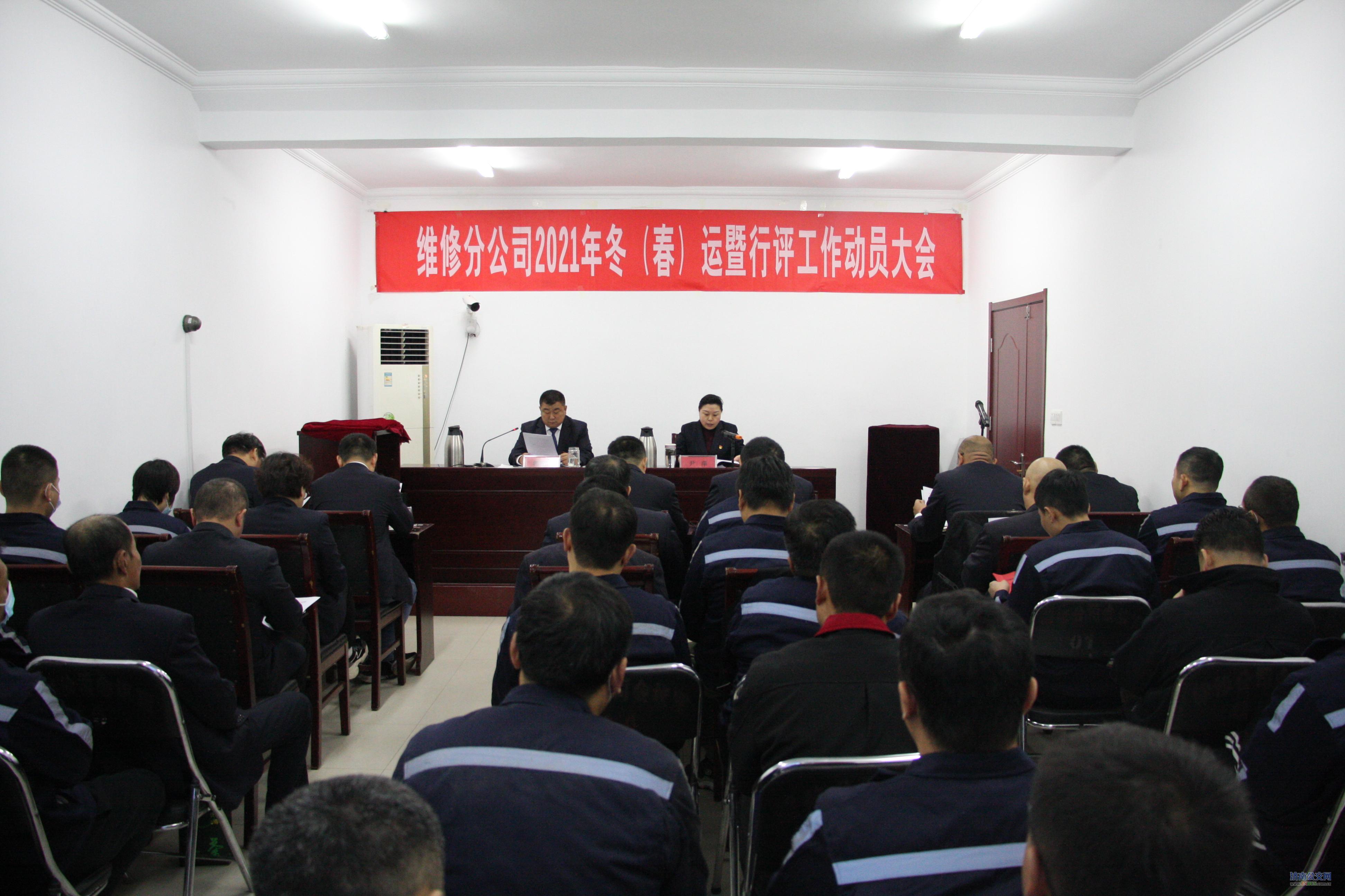 为扎实做好今年冬(春)运和党风行风正风肃纪民主评议活动,进一步提高车辆保障能力和维修服务水平,确保冬运期间为营运公司提供安全、放心、可靠的公交车辆保障,按照集团公司部署和实施意见要求,11月9日上午,维修分公司召开2021年冬(春)运暨行风评议动员大会,对今年冬(春)运和行评工作进行周密部署和详细安排。公司班子成员、机关各部室及各分公司负责人、管理人员、例检员和职工代表近40余人参加会议。
