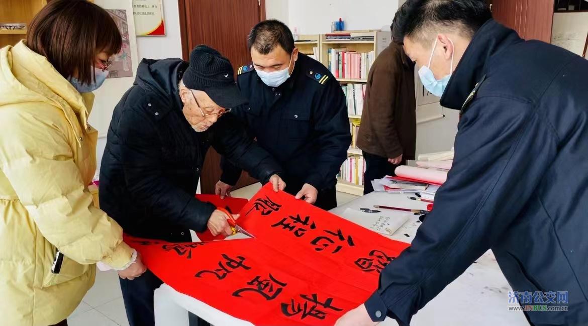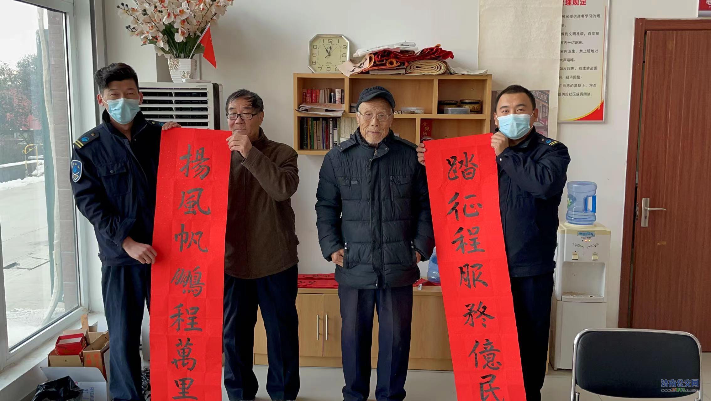 1月26日上午,济南公交干线公司三队东宇花园场站来了一位特殊的客人,90岁高龄的抗美援朝退伍老兵曹传孝老人来到车队,送上亲手书写的春联,向奋战在公交一线的驾驶员致以新春问候。
