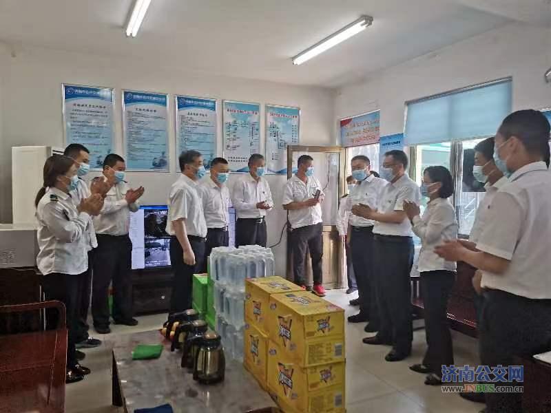 6月1日中午,集团公司石书记、何总、李部长来到中部公司六队看望慰问职工,为大家带来矿泉水、饮料等慰问品,向高温天气坚守岗位的广大职工表示感谢,将集团党委的关怀之情传递到职工心间。在站房里,石书记嘱咐大家炎热天气要保重身体,注意劳逸结合,做好个人防护,同时要求车队一定要做好职工的后勤保障和防暑降温工作,确保高温天气职工工作舒心安心。集团领导的关怀极大的鼓舞了职工的工作热情,纷纷表示一定不负嘱托,做到安全驾驶,文明行车,全心全意为市民出行提供优质服务,当好百姓专职司机。