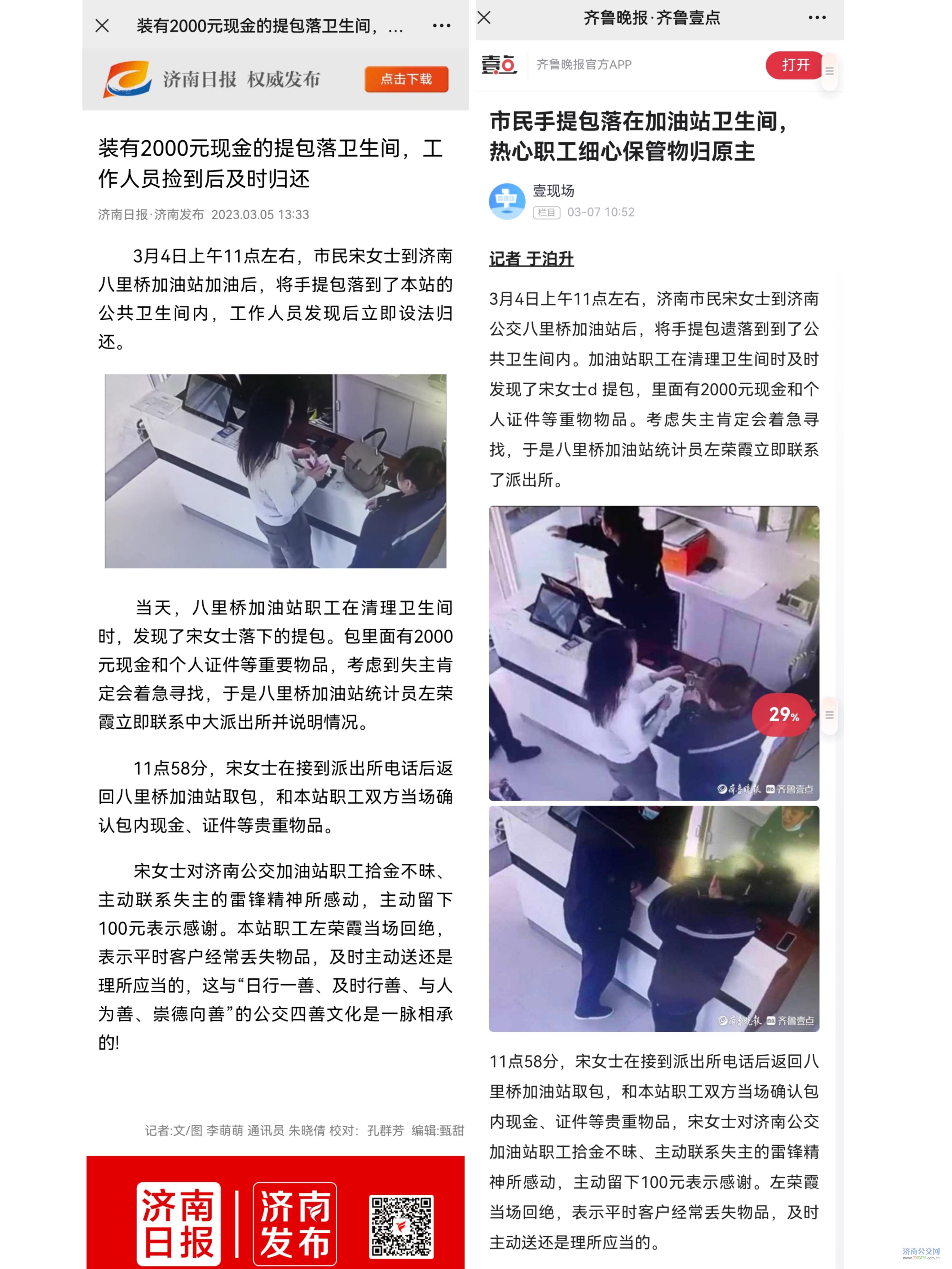 公交加油站还积极投身公益活动,充分彰显责任担当,成立女职工“爱心小分队”组织参加母亲河绿化之黄河植树活动、“爱心助考”公益行、南部山区助学微笑“爱心义卖”等活动,捐赠爱心物资近万元,加油站统计员左荣霞拾金不昧的事迹和爱心团队的事迹多次被济南市各大主流媒体报道。