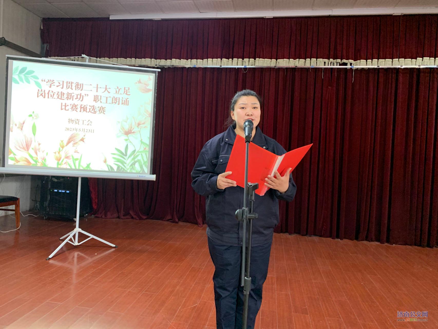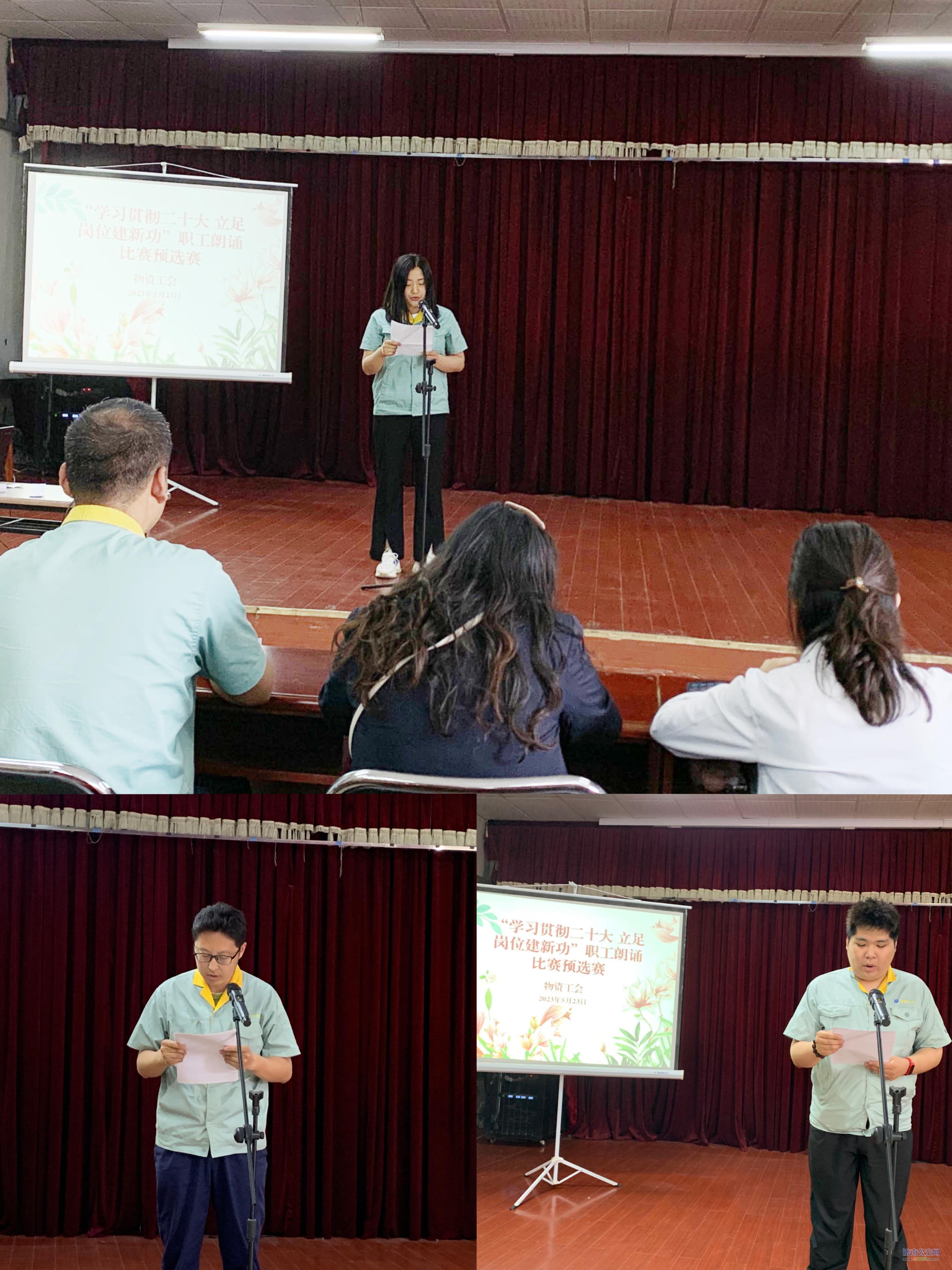 为深入学习贯彻党的二十大精神,进一步深化集团公司主题教育活动,引导广大职工听党话、跟党走,营造劳动光荣的社会风尚和精益求精的敬业风气。5月23日下午,物资公司工会举办“学习贯彻二十大 立足岗位建新功”朗诵比赛预选赛,来自基层分会的10余名职工参加选拔。