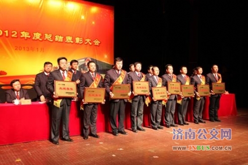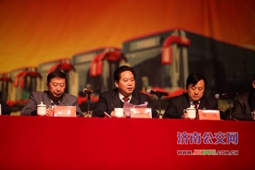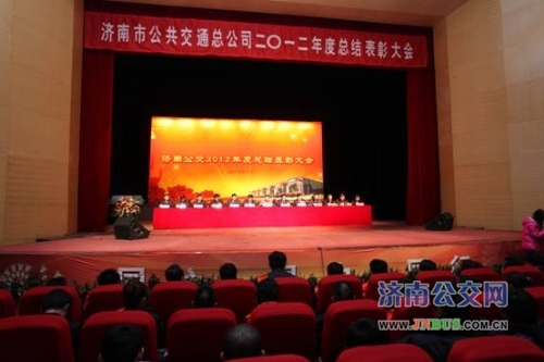 济南公交官网讯 1月18日下午,总公司2012年度总结表彰大会在梨园大戏院隆重举行。总公司班子成员,总公司机关部室管理人员,各单位班子成员、员工代表500余人参加了大会,市交通运输局党委副书记高铠,市交通运输局副局长、工会主任袁谊波出席了大会,高书记作了重要讲话。