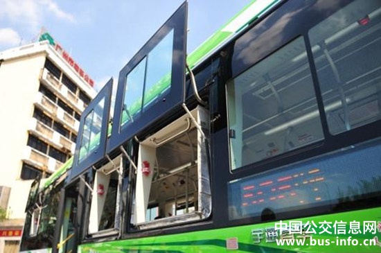 二、逃生通道增加:一键按下去,可同时开启全车车门及7个上移全开式应急安全窗,使逃生通道瞬时达到9个。