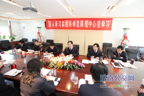 总公司党委副书记、工会主席刘波传达了省委、市委召开的深入学习实践科学发展观活动动员大会会议精神,学习了市委常委、宣传部长谭延伟同志《在全市党委(党组)中心组理论学习工作会议上讲话》。薛总要求,总公司全体党员在学习实践科学发展观过程中要持之以恒、坚持下来,要将学习实践科学发展观的理论成果与实践相结合、指导今后各项工作的开展,促进公交事业科学发展。