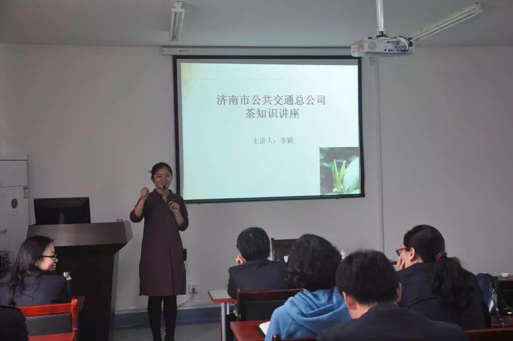 4月20日下午,由总公司机关团委联合山东省青少年素质拓展中心举办的济南公交茶叶品鉴培训讲座在职工学校306室开讲。该讲座由总公司机关团委书记李众主持,山东农业大学茶学硕士、国家级茶艺技师、评茶师、山东省青少中心茶艺课主讲师李颖讲授,总公司机关及各下属单位共40余名职工齐聚一堂,共论茶道,共品清茗。