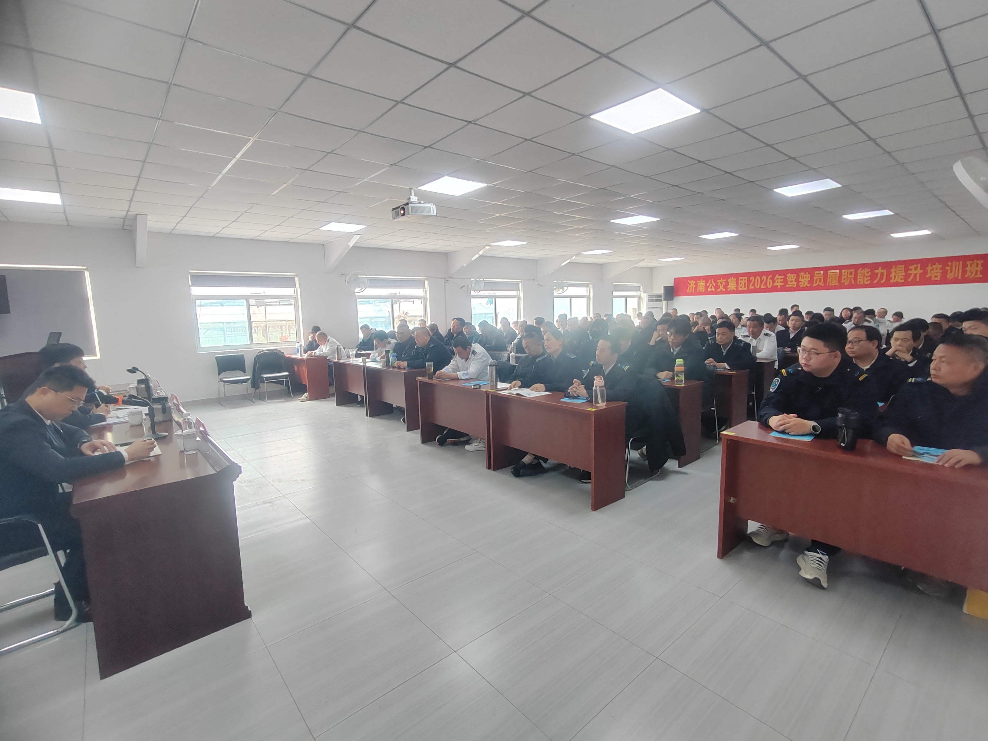 济南公交官网讯 3月30日上午10:30,济南公交集团2026年驾驶员脱产培训开班仪式,在长清培训基地B106教室隆重举行。集团党委组织部(人力资源部)部长陈更、部长苏苗出席仪式,陈更部长作重要讲话,职工培训中心副主任(主持工作)田思民主持仪式并介绍培训相关安排。