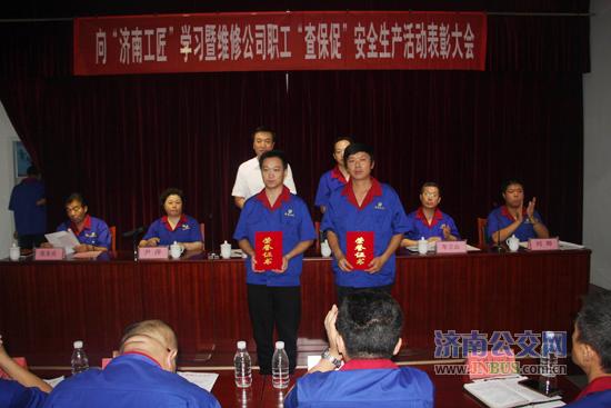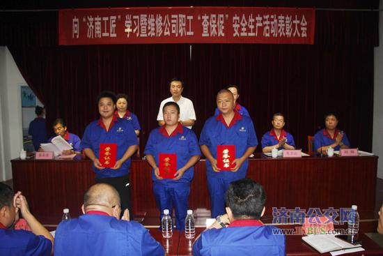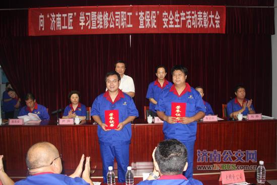 济南公交官网讯 2017年8月9日上午,维修公司召开向“济南工匠”学习暨维修公司职工“查保促”安全生产活动表彰大会,总公司副总经理石军应邀出席会议,维修公司班子成员、机关部室、各分公司负责人及部分职工代表50余人参加大会。